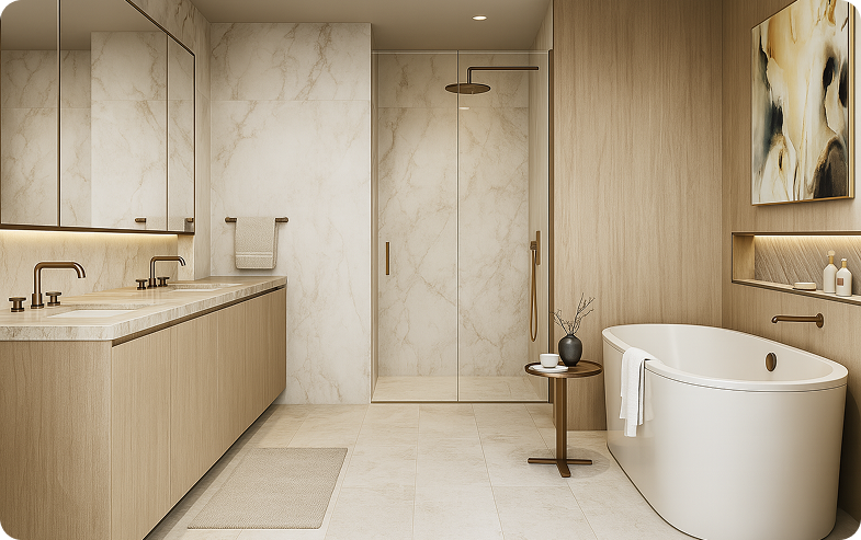 The materials speak to a refined sensibility, where texture, tone and finish come together in a quiet expression of enduring luxury.